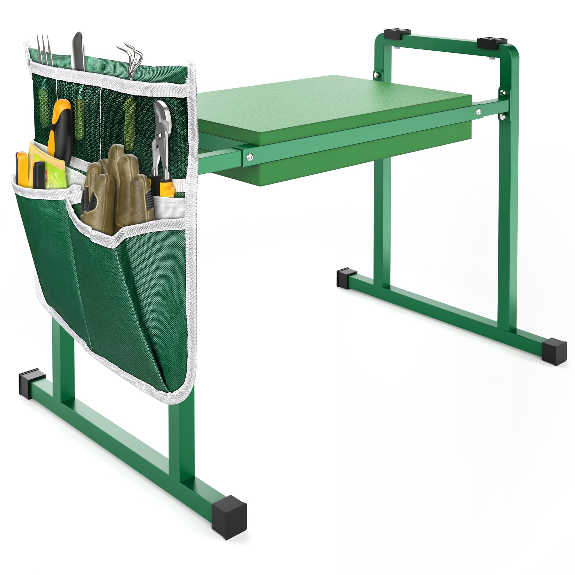 The durable all-metal frame provides stability whether you're kneeling or sitting, and the handy removable tool bag keeps essentials within reach.