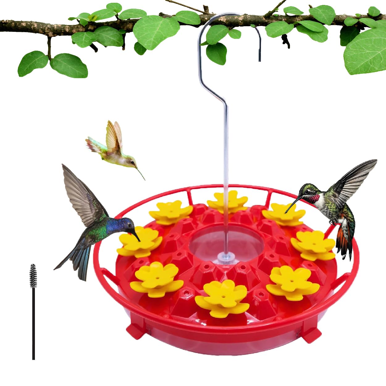 Featuring five red flower feeding ports, it effortlessly catches the attention of curious hummingbirds.