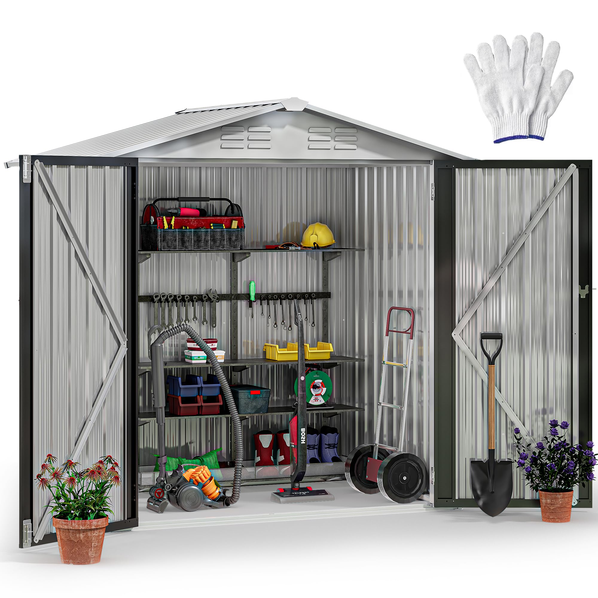 Constructed with thick galvanized steel, this shed is designed to withstand the elements, ensuring your belongings stay secure and dry.