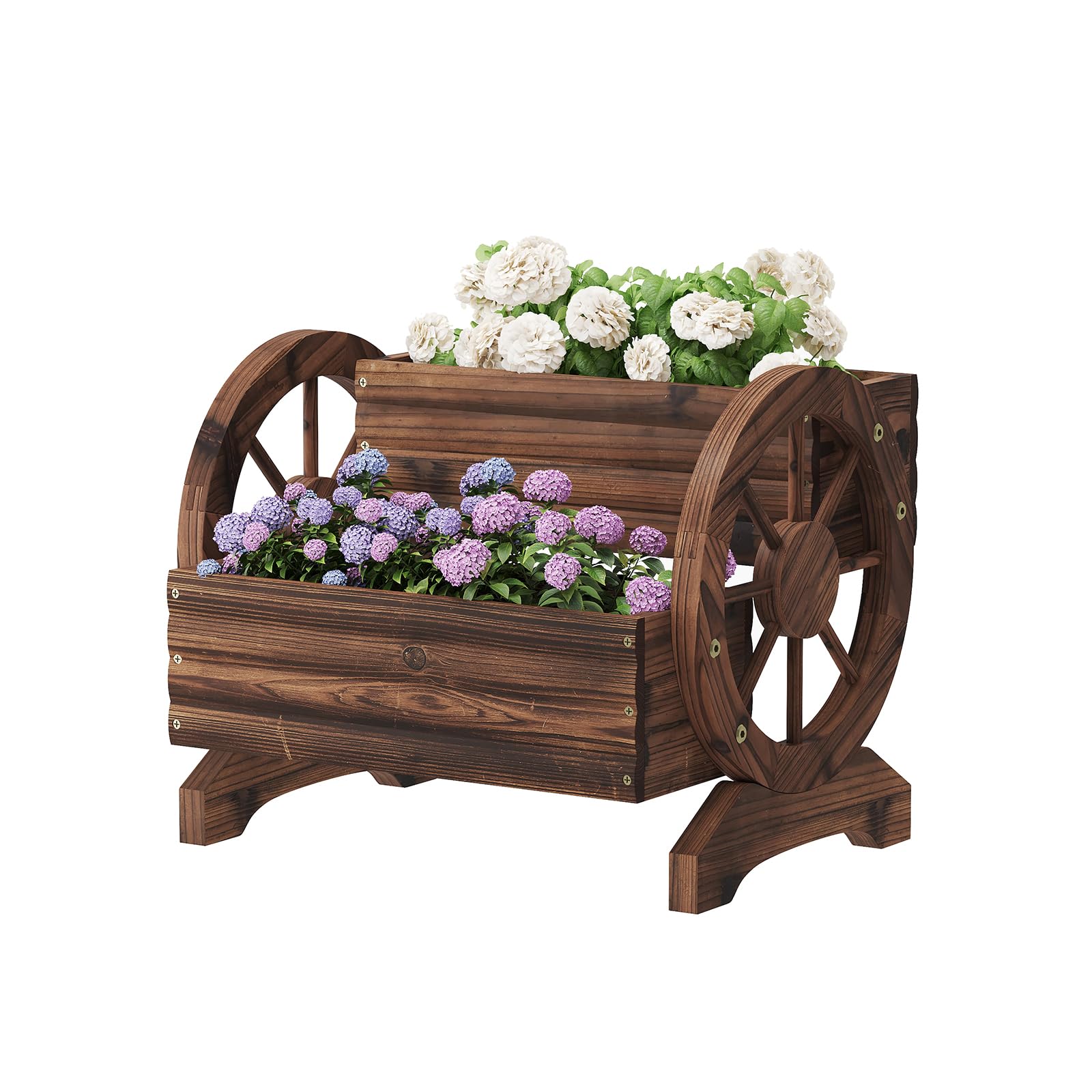 Crafted from sturdy wood and framed with metal screws, this planter promises durability that can weather the elements.